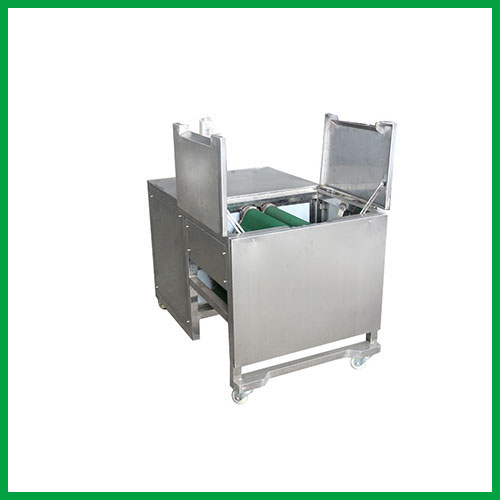 將解凍好的魷魚耳放入傳送帶的入口,自動完成剖切處理。鋸條非常纖薄鋒利,剖切精準,提高了剖片的準確度和出成率,切割面光滑完整,破損率低,操作簡單方便,效率高,節省人力,降低成本。設備容易拆卸,更換鋸條。