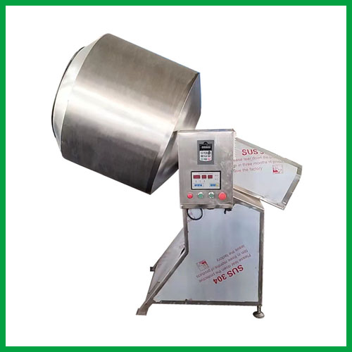 采用減速電機,齒輪傳動,使物料不破碎,自動攪拌;拌料均勻,操作方便,產量高;滾桶的轉速和傾斜度都可以調節,給粉量也可以控制;可以對任何食品進行調味、拌料。